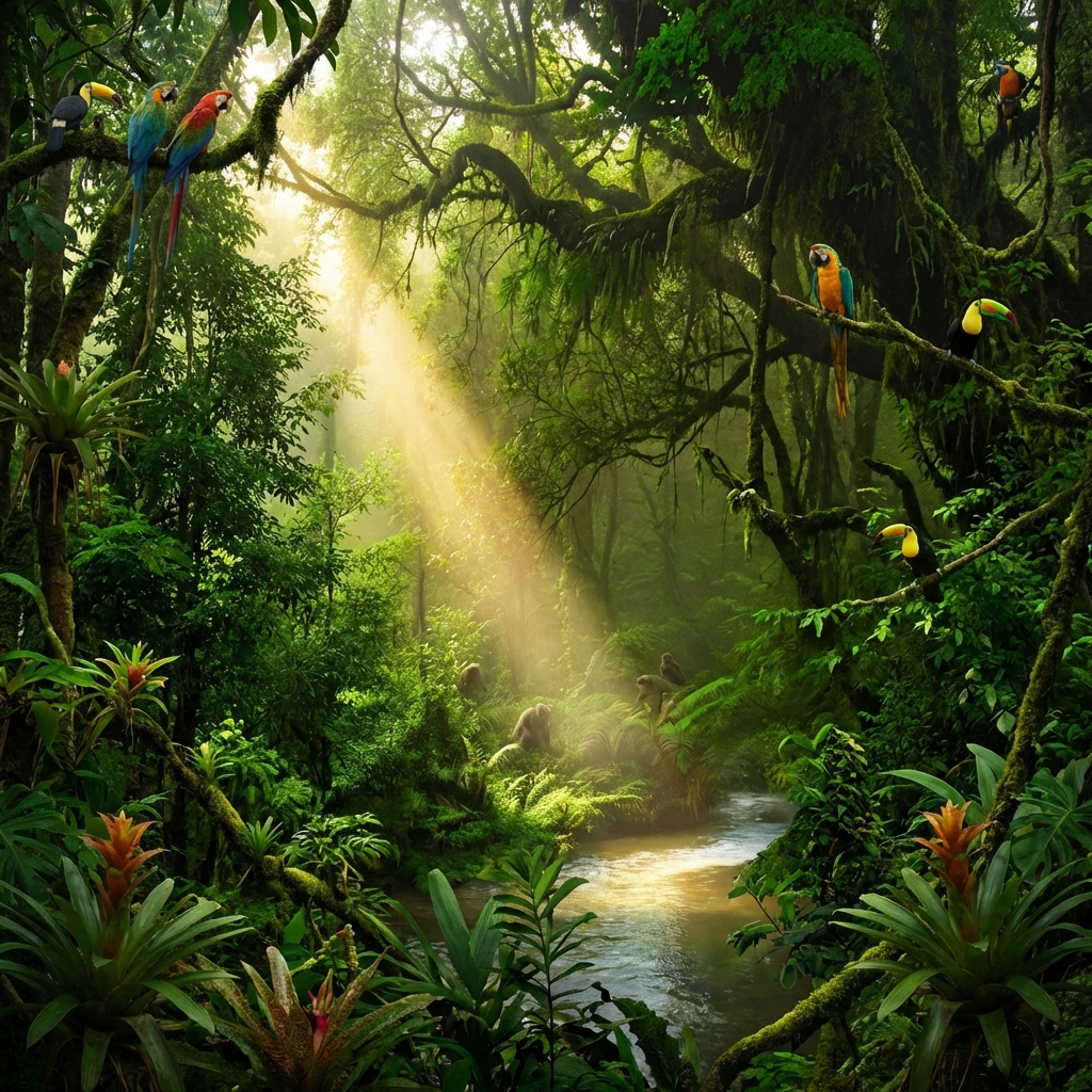LIVE🌿 NatureRainforest canopy with exotic birds