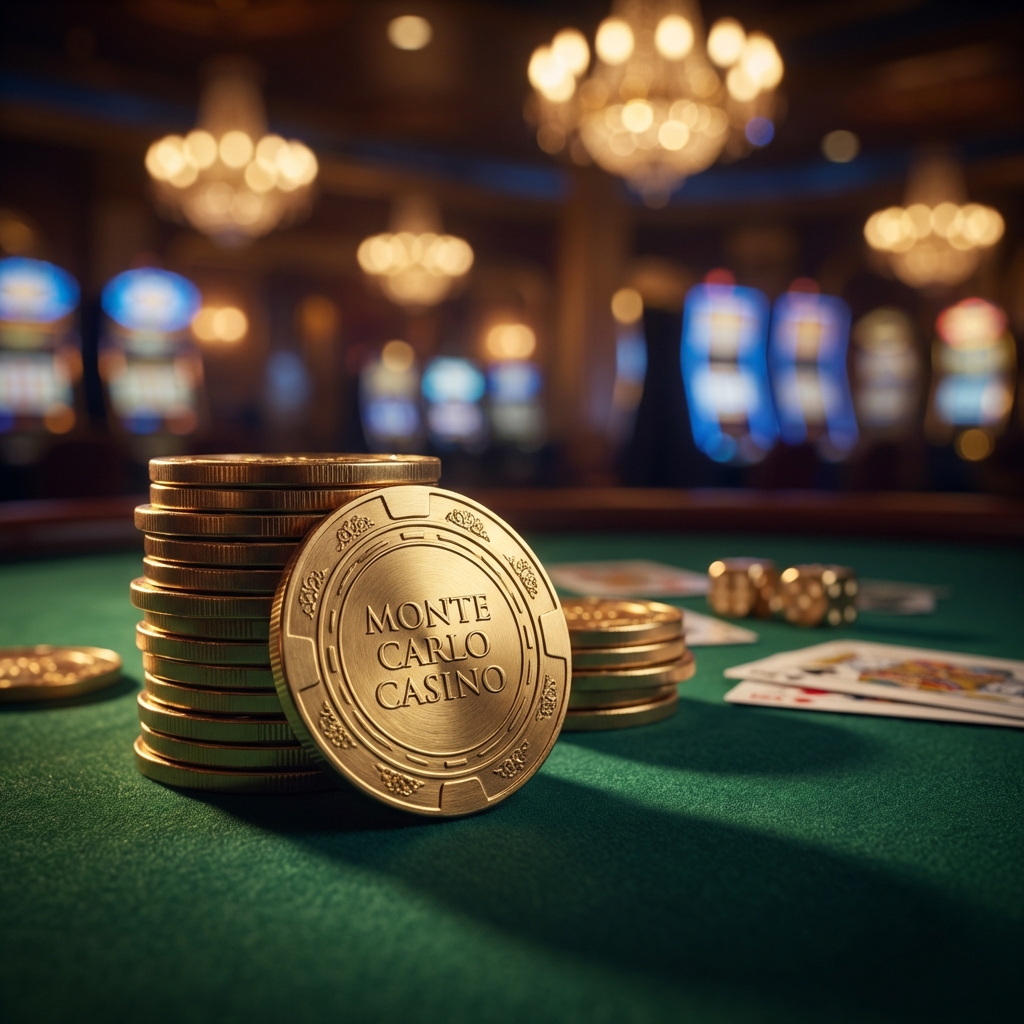 LIVE🎰 Casino & GamingGolden chips on velvet table