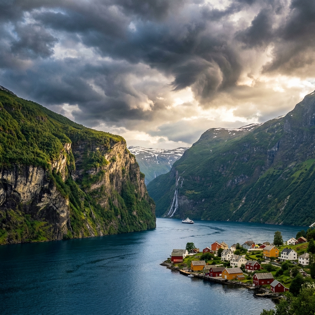 LIVE🏔️ LandscapesNorwegian fjord at sunset