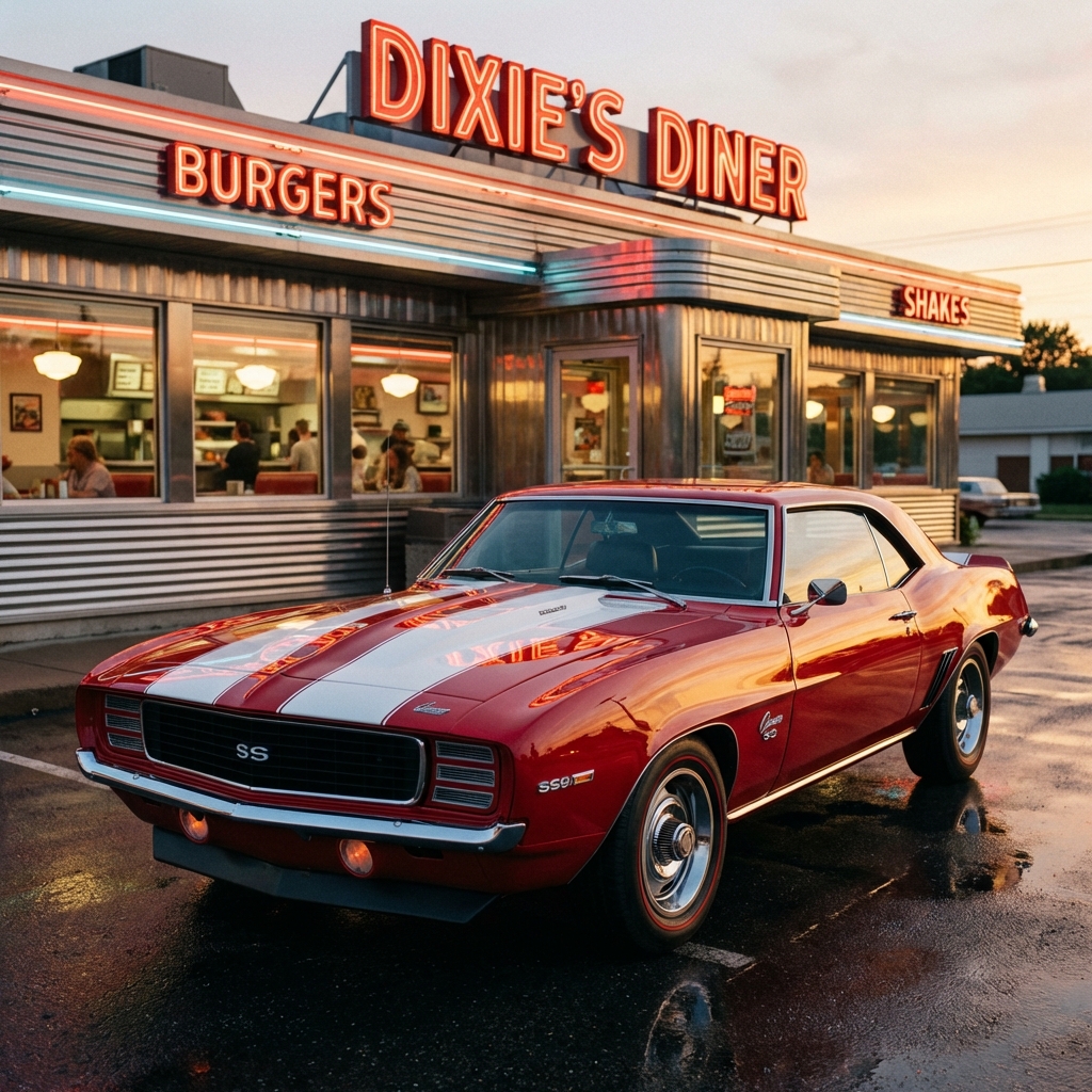 LIVE🚗 Machines & Cars1969 Camaro at retro diner