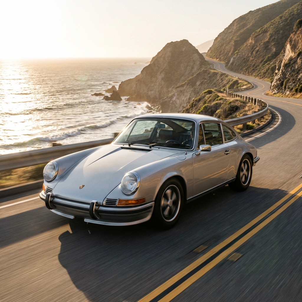 LIVE🚗 Machines & CarsSilver Porsche 911 on coastal road